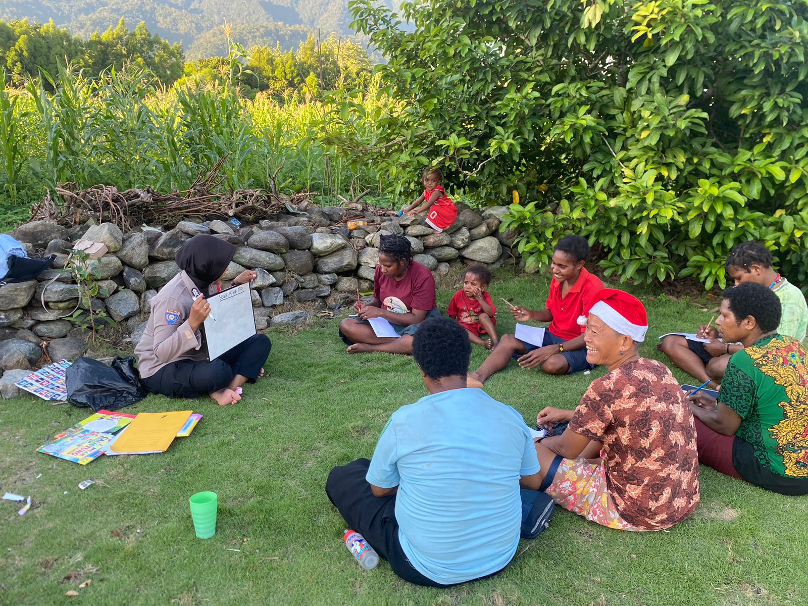 Setibanya di lokasi, personel disambut hangat oleh warga. Kegiatan diawali dengan doa bersama dan dilanjutkan dengan sesi pembelajaran. IPTU Yuliani Tecuari memberikan pengenalan huruf-huruf abjad kepada para ibu, sementara Brigpol Hartati dan Bripda Murni Awes mengajak anak-anak belajar mengenal angka dan warna melalui metode yang interaktif dan menyenangkan.