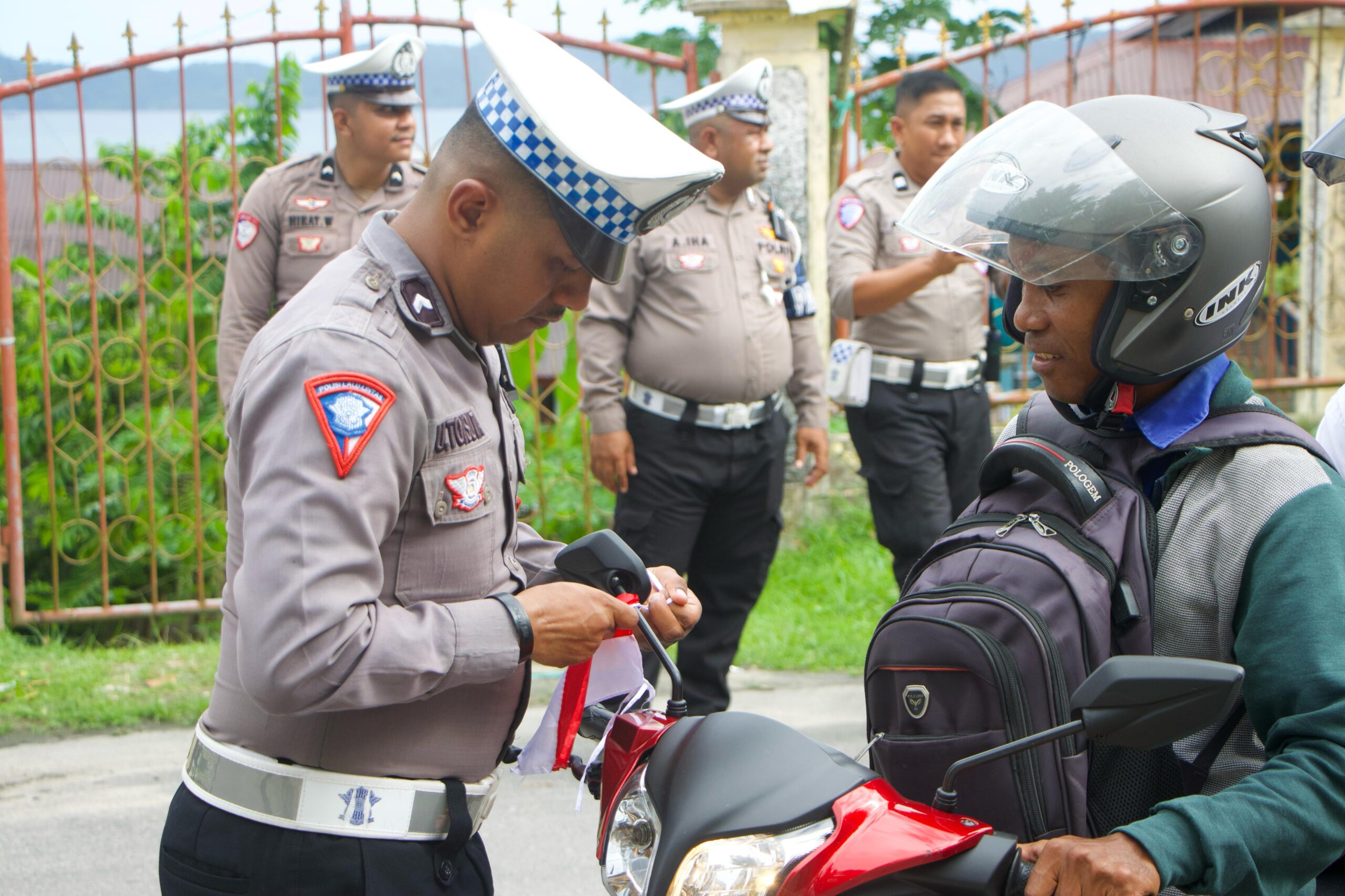 Tanpa formalitas yang kaku, kegiatan ini menjadi momen penuh kehangatan. Warga dari semua kalangan tersenyum lebar menerima bendera kecil mereka, para pengendara sepeda motor dan mobil melambatkan laju kendaraan bukan karena razia, tapi karena ingin menyambut sapaan tulus dari aparat keamanan yang mengajak: “Ayo kita kibarkan Merah Putih di mana pun berada!”