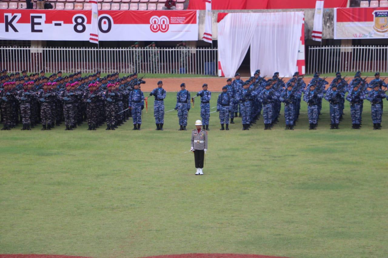 Bertindak sebagai Inspektur Upacara, Pangdam XVII/Cenderawasih Mayjen TNI Rudi Puruwito, S.E., M.M., sementara Komandan Upacara adalah Kabag Dalpers Ro SDM Polda Papua AKBP Timur Santoso, S.I.K., M.AP.