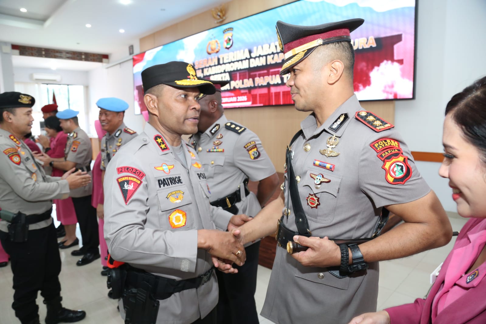 Dalam prosesi tersebut, jabatan Wakapolda Papua diserahterimakan dari Brigjen Pol. Dr. Faizal Ramadhani, S.Sos., S.I.K.,M.H., kepada Kombes Pol. Muhajir, S.I.K., M.H.