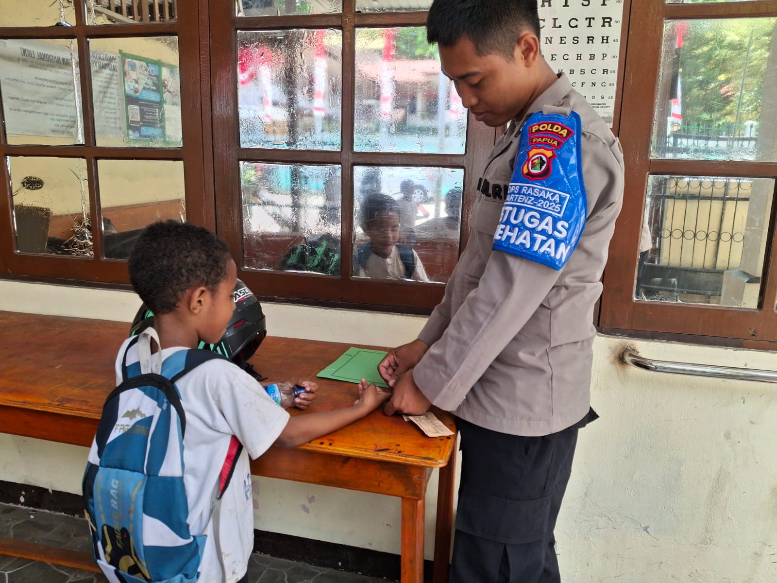 Papua – Dalam rangka mendukung pelaksanaan Operasi Rasaka Cartenz 2025, Subsatgas Keladi Sagu melaksanakan kegiatan pemeriksaan kesehatan gratis bagi anak-anak di Klinik Polresta Jayapura Kota, Senin (18/08) pagi.