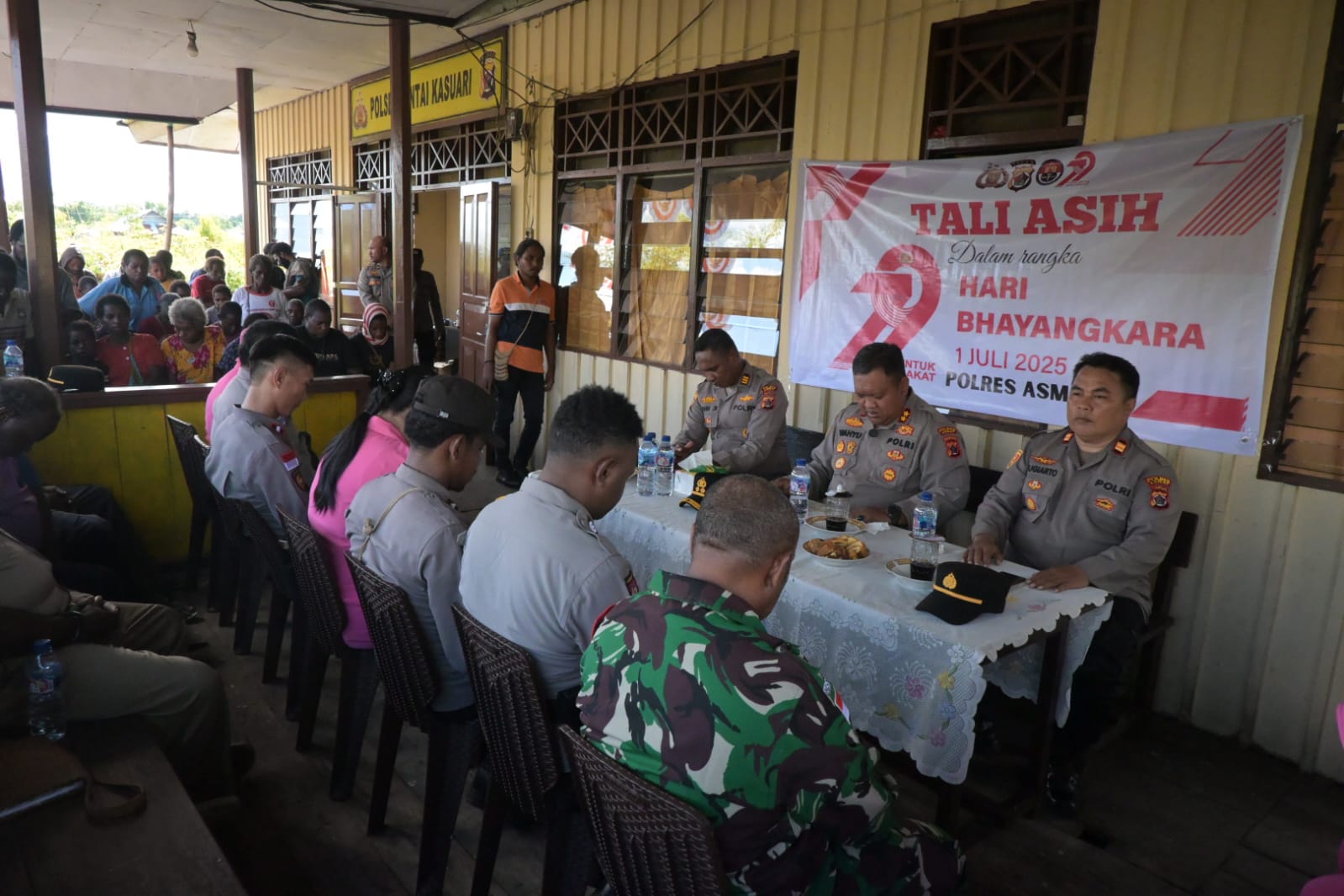 Papua – Kapolres Asmat AKBP Wahyu Basuki, S.I.K., beri tali asih kepada masyarakat Kampung Kamur Distrik Pantai Kasuari, Kamis (26/06/2025).