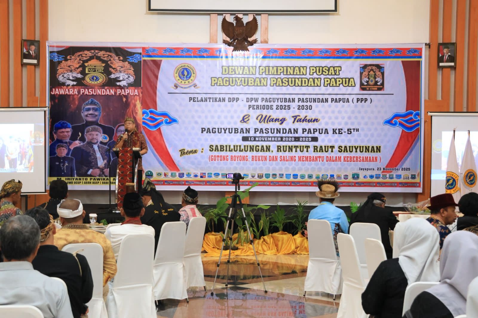 Kegiatan tersebut dihadiri sejumlah pejabat pemerintah daerah dan tokoh adat. Di antaranya Pj. Sekda Provinsi Papua Lukas Christian Sohilait, S.T., M.Si., Asisten II Setda Provinsi Papua M.B. Setyo Wahyudi, S.E., M.M., Ketua Dewan Adat Tabi Yakonias Wabrar, serta ratusan pengurus dan anggota Paguyuban Pasundan Papua.