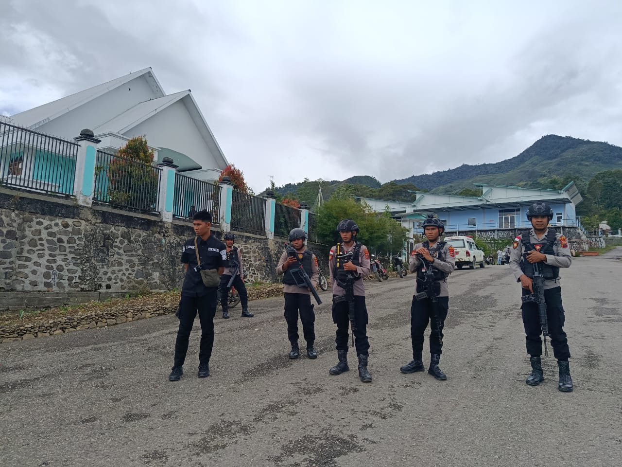 Papua – Dalam rangka menjaga situasi kamtibmas yang aman dan kondusif di wilayah Kabupaten Tolikara, Polres Tolikara melalui Tim Patroli Regu Siaga I melaksanakan pengamanan kegiatan Pemberkatan Nikah Massal di Gereja Ebenheizer, yang dilanjutkan dengan patroli rutin di seputaran Kota Karubaga, Minggu (13/07/2025).